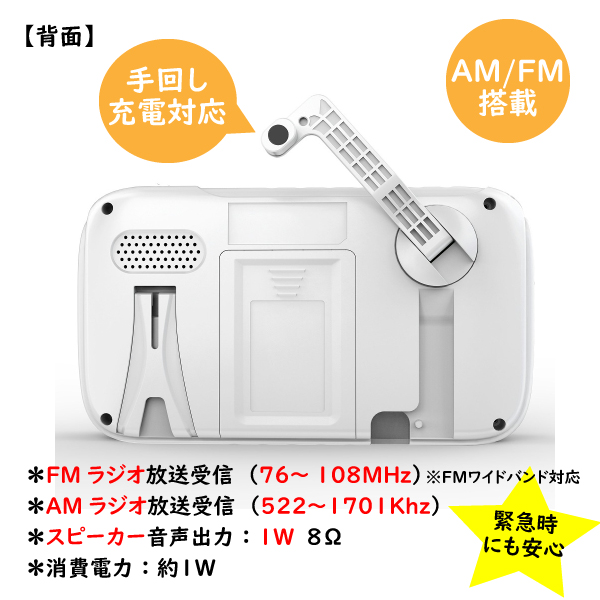 | 商品名 | 録画機能搭載4.3インチ液晶 AM/FM搭載(手回し充電対応) ポータブルワンセグテレビ |