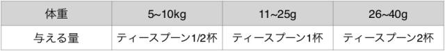 ・上記の量を目安に、フードにトッピングするか、おやつとして与えてください。