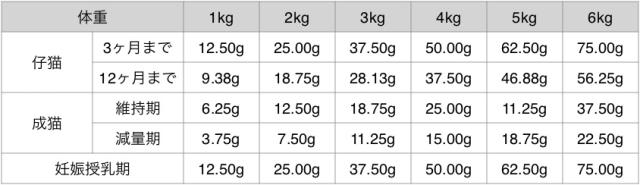 ・上記給与量目安を参考に、愛猫の体調に合わせて適宜調整してください。