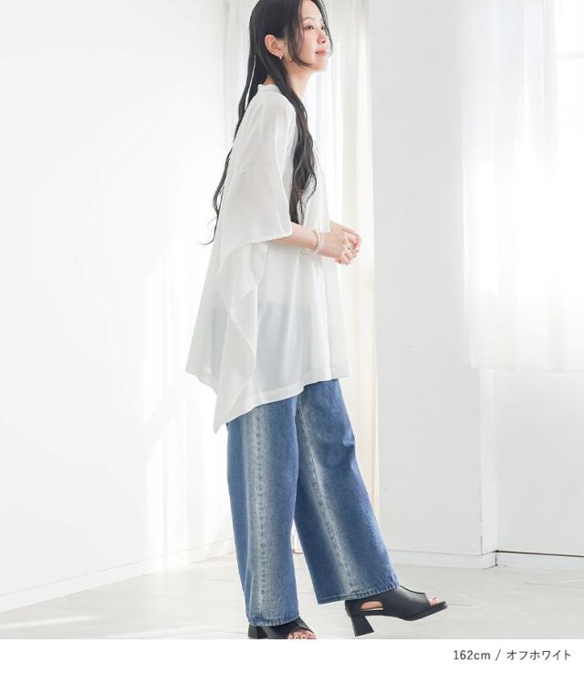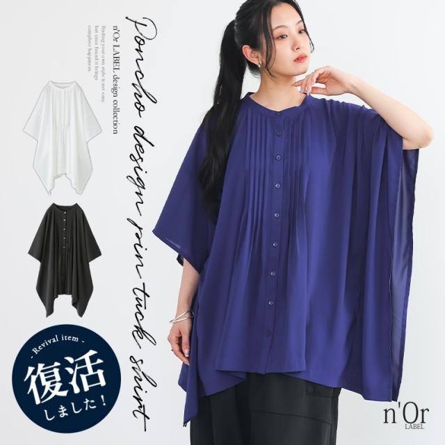 レディース トップス ブラウス シャツ ロングシャツ ボタンシャツ 前開きシャツ デザインシャツ ポンチョ風 バンドカラー 半袖 五分袖 袖コンシャス ドロップショルダー ビッグシルエット オーバーサイズ 変形 ドレープ 落ち感 胸元ピンタック 無地 イレギュラーヘム おうちで洗える 薄手 涼しい 春夏 女子会 カジュアル お出掛け 旅行 リゾート 大人女子 大人可愛い お洒落可愛い モード ラフ かっこいい Sサイズ Mサイズ Lサイズ LLサイズ 3Lサイズ XLサイズ フリーサイズ ぽっちゃり 体型カバー 大きいサイズ n'OrLABEL ノア—ルレーベル ホワイト 白 オフホワイト ブルー 青 ロイヤルブルー ブラック 黒[ID]tin0057