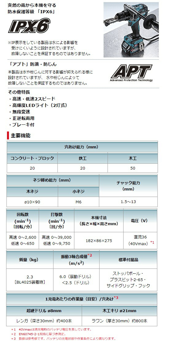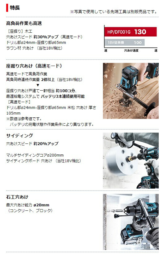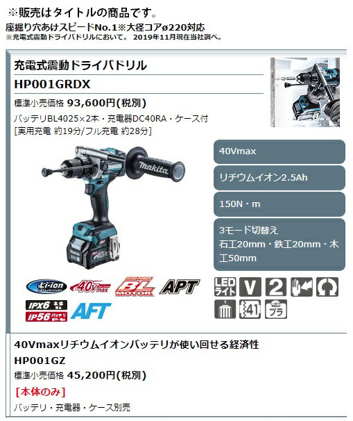 (マキタ) 充電式震動ドライバドリル HP001GZ 本体のみ 大径コアφ220対応 40Vmax対応 makita