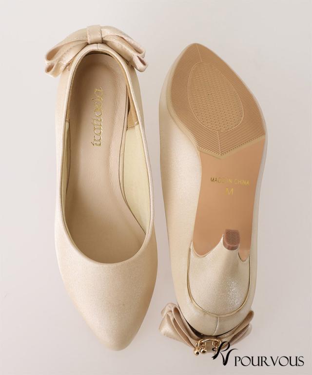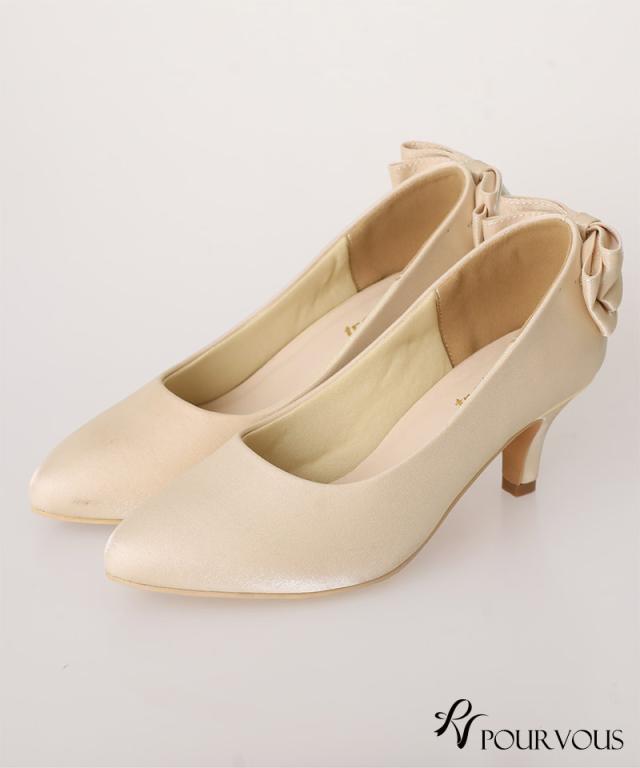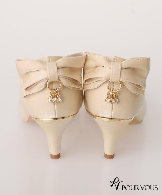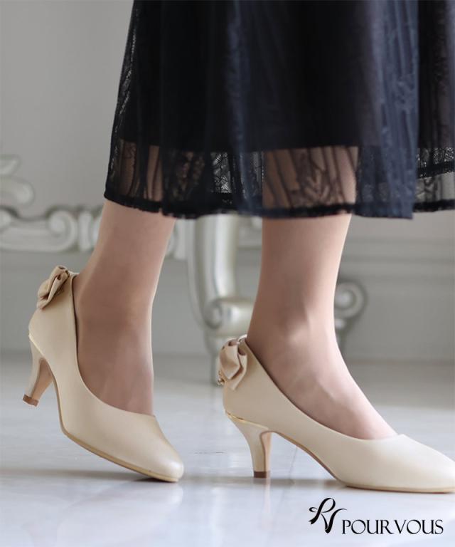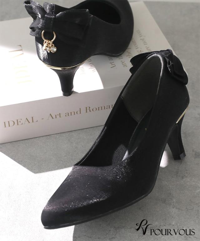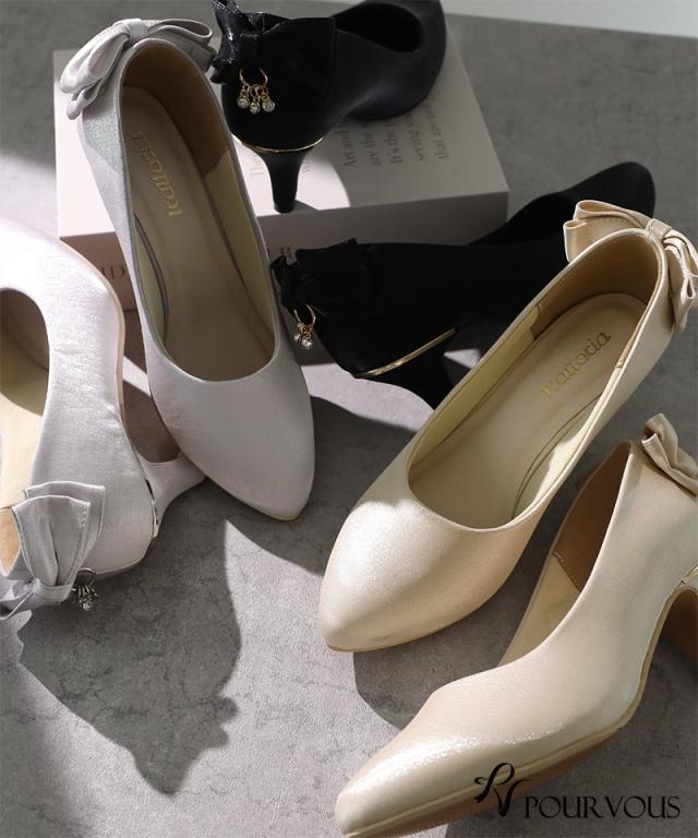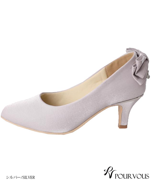 バックリボンビジュー付きパンプス【242221620】20代・30代・40代・50代パーティーシューズ・痛くないパンプス・ローヒール・太ヒール・ピンヒール・ヒール・レース・ラメ・デザインヒール・フォーマル・大きいサイズなど・即日発送・送料無料・結婚式・婚活・披露宴・顔合わせ・二次会・同窓会・お呼ばれ・食事会・謝恩会・親族・七五三・お宮参り・冠婚葬祭・弔事・女子会・デート・入学式・卒業式・入園式・卒園式・ママ・マタニティー・セレモニー・セレブ・パーティー