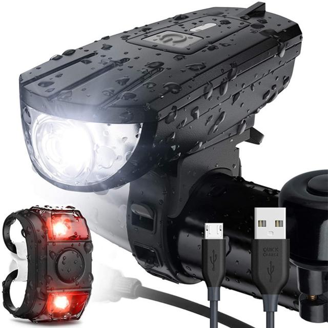 LED自転車ヘッドライトUSB充電式警告カエルランプテールライトセット