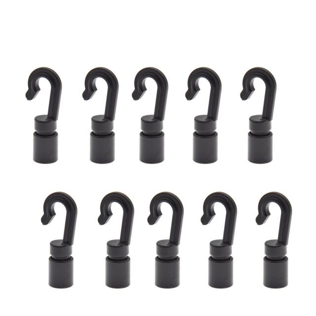 10pcsPomプラスチックスナップフッククリップショックタイコードエンドセーフティロックロープバックルアウトドアキャンプ物干しフックアクセサリー