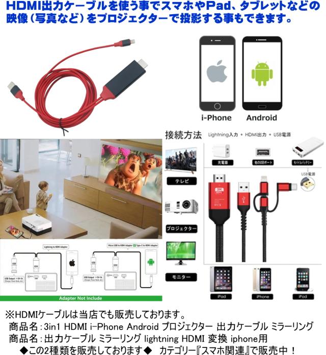 ◆i-PhoneやAndroidのスマホやタブレットでプロジェクターで投影させるには、HDMIケーブルが必要です◆