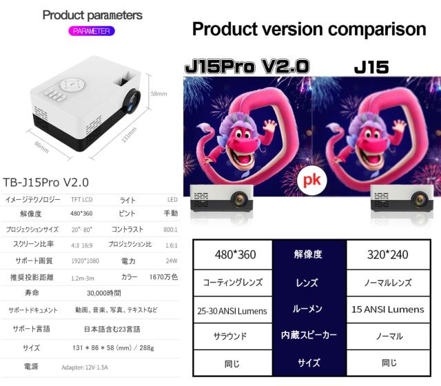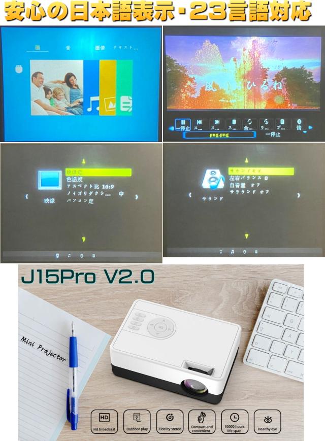 【送料無料・税込み】最新 TB-J15 Pro ver.2.0 超小型 プロジェクター モバイル スマホ iPhone Android PC パソコン 高画質 コンパクト ホーム シアター ゲーム 30 ANSI ルーメン テレビ DVD 接続 投影 大画面 20 80 インチ 簡単 操作 プレゼント 人気 売れてる 日本語 映像