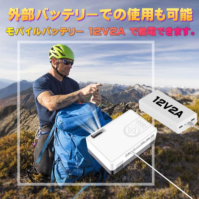 外部給電(モバイルバッテリー)12V2Aも対応、コンセントが無い場所でもOK!