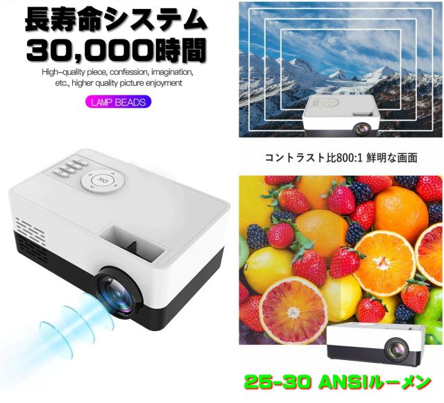 プロジェクター 明るさ 30ANSIルーメンスマホ プロジェクター スマホプロジェクター 小型 映像 解像度 480x360 クリアな映像 有線接続 ケーブル 投影 アフターフォロー