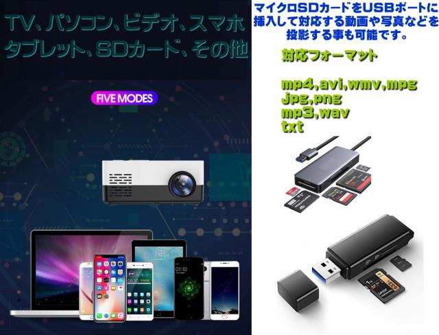 マイクロSDカードに記録した動画の再生、音楽の再生、写真の投影