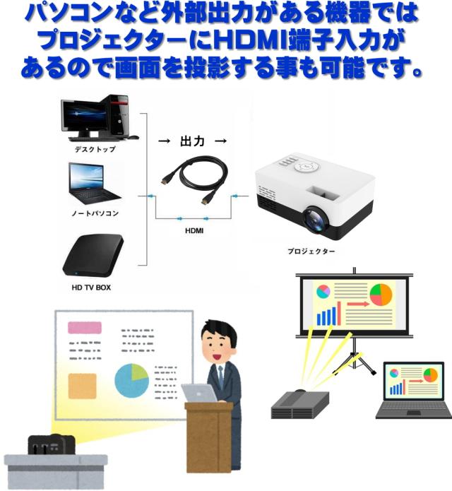【他にも】プロジェクターにHDMI入力端子がありますので、他にもTVなどもプロジェクターで投影する事も可能です。