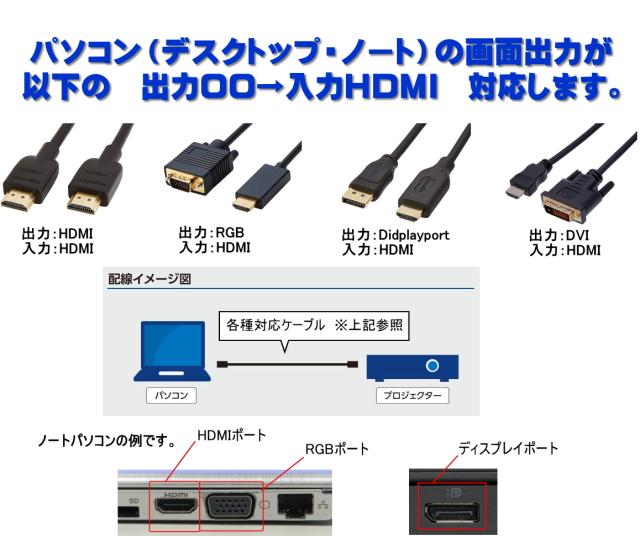 パソコン(デスクトップ・ノート)画面をプロジェクターで☆