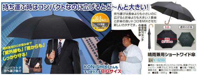 直径110cm 晴雨兼用ショートワイド傘 折り畳み傘 ブラック UV遮蔽 約99.8% メンズ 紳士 シニア 大きい カサ レイングッズ 雨具 梅雨シーズン 黒 シニアファッション 50代 60代 70代 80代 父の日 お父さん ism p18299
