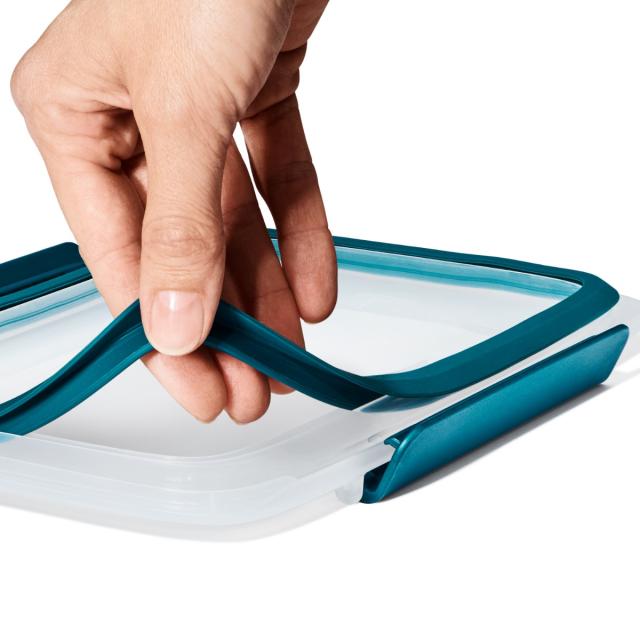 フタを閉める際は、フタの中央部分を軽く押して空気を抜き、フタを容器に密着させてからスナップを閉めてください。もちろんパッキンは外してお手入れが可能です。