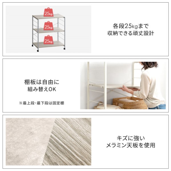 1段耐荷重25kg 頑丈設計 スチール ラック スチールシェルフ アイアン シェルフ フリーラック 収納棚 間仕切り リビング キッチン 子供部屋 本棚 キャスター 白 ホワイト グレー