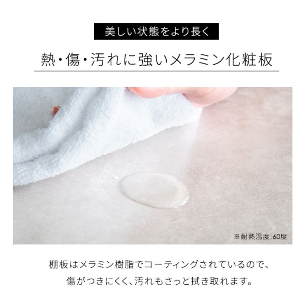 棚板:合成樹脂化粧繊維板(メラミン樹脂)