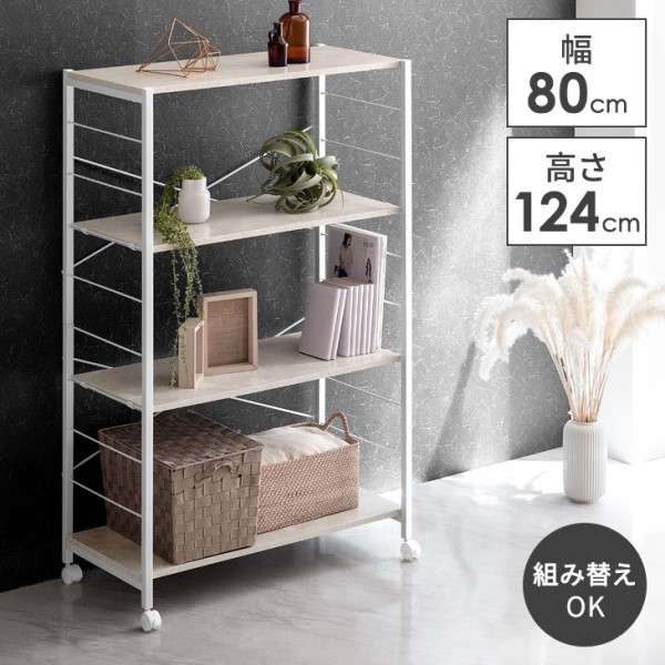 スチールラック 4段 幅80cm 可動棚 ラック ワイヤーラック アイアンラック ディスプレイラック 収納ラック 4段ラック シェルフ オープンシェルフ ウッドシェルフ ユニットシェルフ 木製 棚 食器棚 収納 棚板 リビング収納 モダン