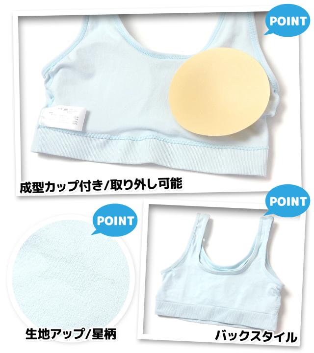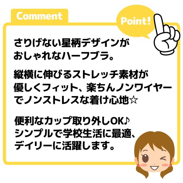 【送料無料】女児 ジュニア ハーフブラ カップ取り外しOK ノンワイヤー ストレッチ 星柄 学校 下着 150cm 160cm yg-1439【メール便対応】