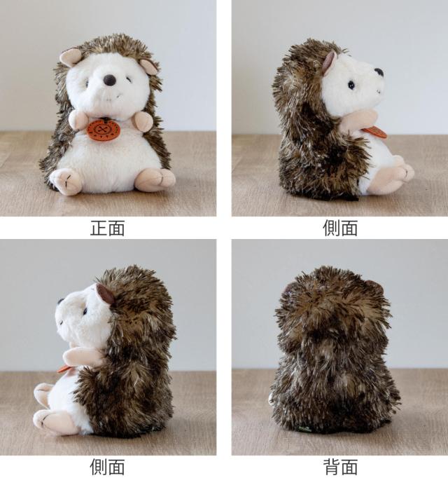 本物の鋭い毛とは対照的に、気持ち良いソフトな毛並みがあたたかい印象を与えてくれます。愛らしいつぶらな瞳で、両手を広げてあなたを待っているかのようなハリネズミです。「potte(ポッテ)」 シリーズ発売初期からのロングセラー商品です。