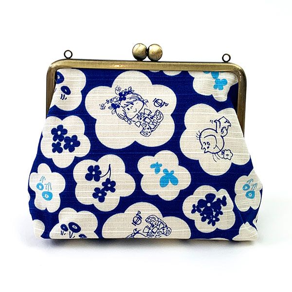 水森亜土 和柄シリーズ がま口ポーチ 青 コスメポーチ 小物入れ 亜土ちゃん
