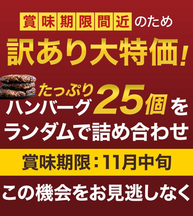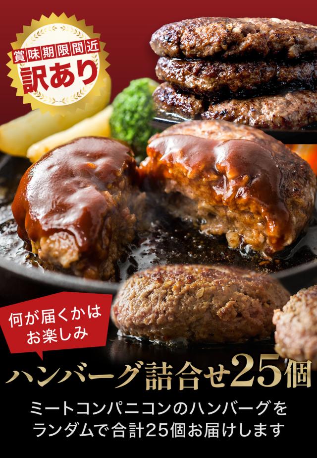訳あり!ランダムハンバーグ詰め合わせ25個セット! 賞味期限間近1月下旬!送料無料 牛肉 冷凍 生ハンバーグ パテ ギフト 肉お取り寄せ グルメ お取り寄せグルメ お弁当 子供 時短ごはん 業務用 おかず 肉 福袋 2025 食品
