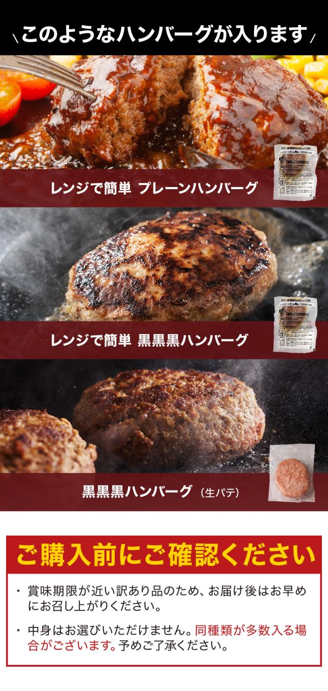 | 原材料 | 【レンジで簡単 プレーンハンバーグ】食肉等(牛肉、豚肉、牛脂)、ソテーオニオン、つなぎ(パン粉、卵白、牛乳)、トマトケチャップ、酵母系調味料、食塩、香辛料、(原材料の一部に卵、乳、小麦、大豆、牛肉、豚肉を含む) 【レンジで簡単 黒黒黒ハンバーグ】食肉等(豚肉(国産)、牛肉(国産)、牛脂)、ソテーオニオン、パン粉、鶏卵、砂糖、味噌、食塩、香辛料/乳化剤、酒精、増粘剤(アルギン酸エステル)、V.C、(一部に小麦・卵・乳成分・牛肉・大豆・豚肉を含む) 【黒黒黒ハンバーグ(生パテ)】食肉等(豚肉(国産)、牛肉(国産)、牛脂)、ソテーオニオン、パン粉、鶏卵、砂糖、味噌、食塩、香辛料/乳化剤、酒精、増粘剤(アルギン酸エステル)、V.C、(一部に小麦・卵・乳成分・牛肉・大豆・豚肉を含む) ※なお、仕入れ状況により予告なく産地が変更になる場合がございます。予めご了承ください。 |