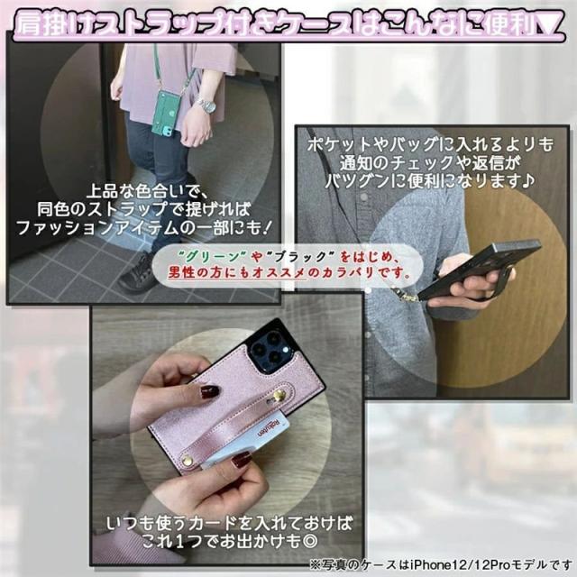 ケースの色合いに合わせたストラップ付属で、落下防止&荷物を減らせます。