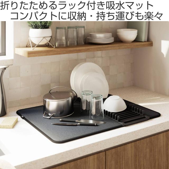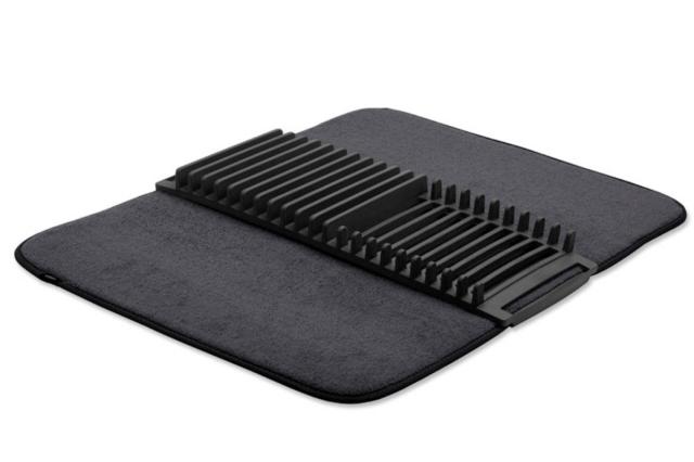 吸水マットにラックの付いた新感覚のディッシュラック。吸水性に優れたマイクロファイバーを採用し、洗った食器から水気を吸収すると同時に、マットの下の水気もとってくれます。やわらかい素材なのでキッチンを傷つけずに食器を乾燥できます。