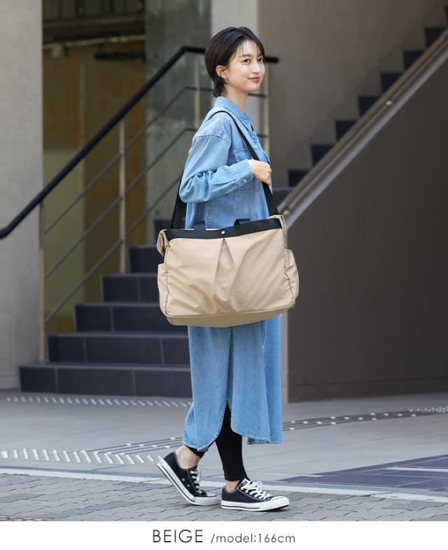 両サイドのスナップボタンで、バッグの形を変えることが可能。
