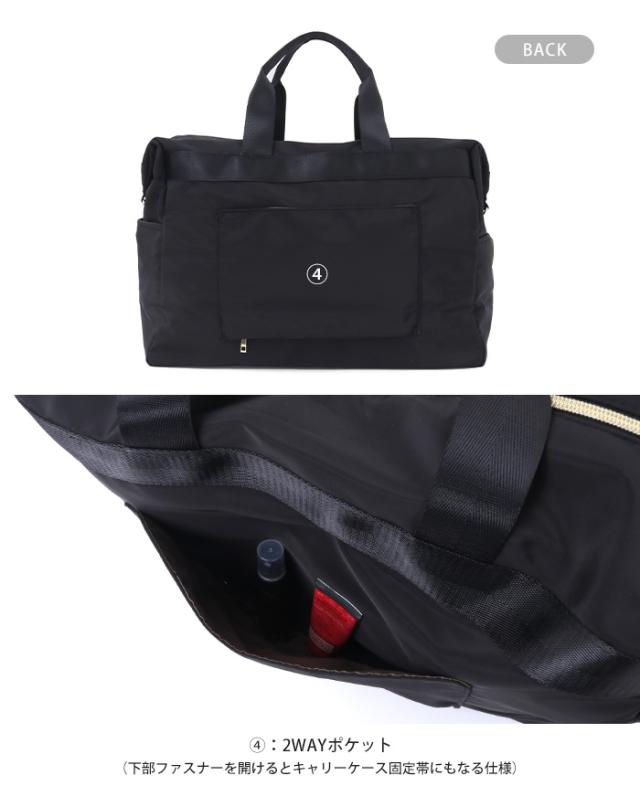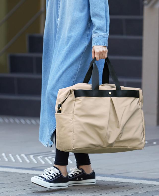 高密度ポリエステル生地を使用した、軽量の3WAYデザインのボストンバッグ。