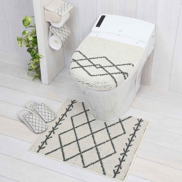 ベニワレンのトイレ用品シリーズです。モロッコのベルベル人の部族、ベニ・ワレンによって織られるラグをイメージした人気のデザインです。トイレマット、フタカバー、便座シート、ペーパーホルダーカバー、スリッパの同シリーズで揃えると統一感が出てより美しいトイレ空間が広がります。