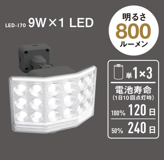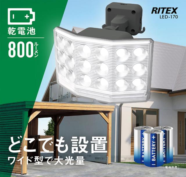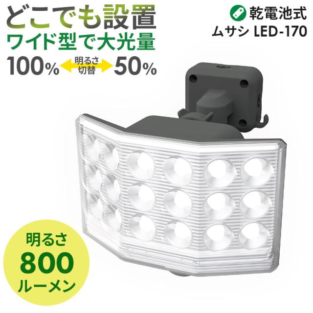 【47%引き】 人感センサーライト 屋外 防犯ライト ムサシ RITEX 9Wワイド フリーアーム式 LED乾電池センサーライト(LED-170) 乾電池式 玄関 ガレージ 照明 防犯グッズ LEDライト 明るさ調整