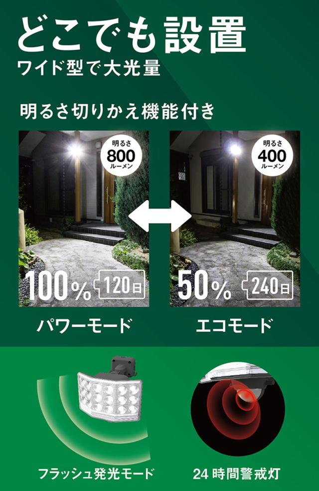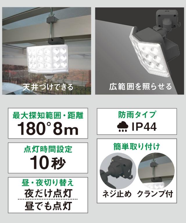 LED素子にはバラツキがあるため、同じ品番のセンサーライトでも光色・明るさが異なる場合があります。あらかじめご了承ください。