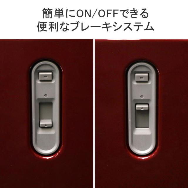 メインルームには、ファスナー付きの収納スペースを備えており、荷物の仕分けが簡単に行える設計。また、抗菌加工を施した内装生地を使用されているのも嬉しいポイントです。傷のつきにくいリブ形状や、容易に方向転換可能な静音キャスター、不意な走行を防ぐキャスターストッパー付きであるなど、快適な移動をサポートする機能性で申し分のない使い心地を実感いただけます。