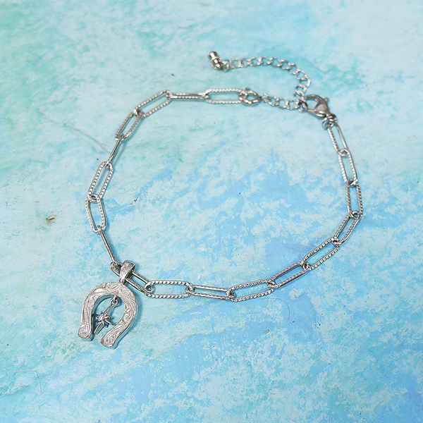 ハワイアンジュエリー アンクレット ホースシュー 馬蹄 キュービックジルコニア スクロール BOX 金属アレルギー対応 サージカル ステンレス ギフト インスタ ラッピング対応