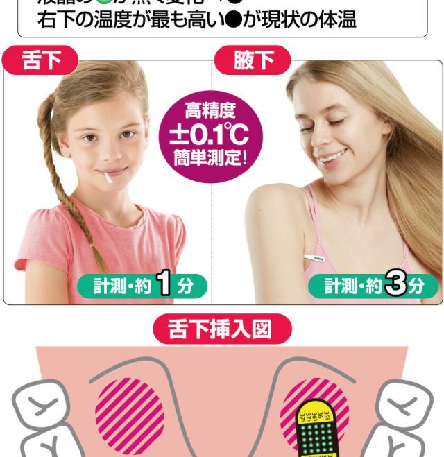 | 仕様 | 測定範囲:35.4℃〜40.4℃、精度±0.1℃ 測定方式:液晶色調変化方式 |