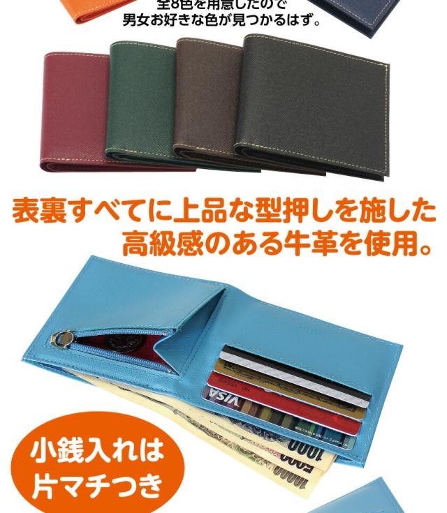 表裏すべてに上品な型押しを施した高級感のある牛革を使用! 全8色をご用意! 男女問わずお好きな色が見つかるはず!
