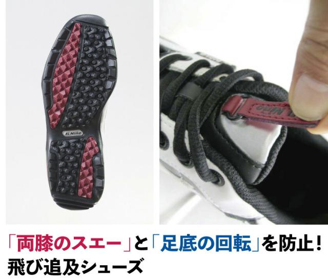 シューズの滑りを防止し、上体の捻転に締まりが加わる。