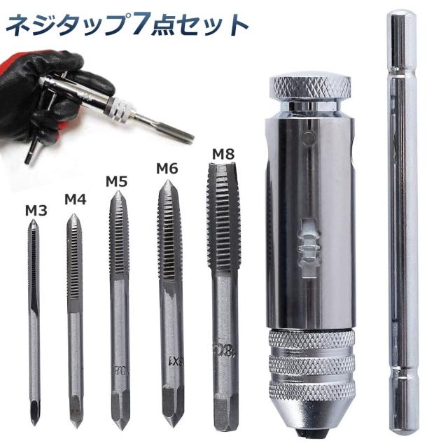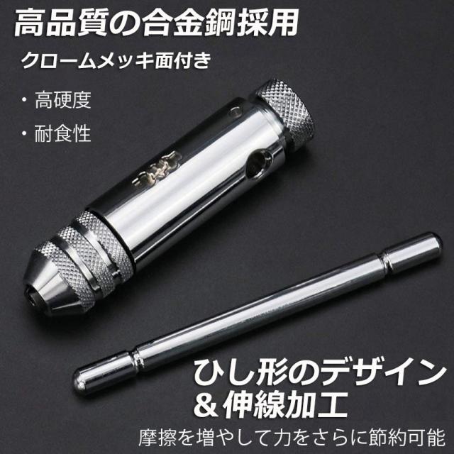 ネジタップ ドリルタップ タップセット ラチェット タップホルダー T型 ハンドル タップレンチ 接続 タップハンドル 工具 セット 穴あけ 調整可能 M3 M4 M5 M6 M8 ねじ切り タッピングハンド ハンドタッピング 作業用