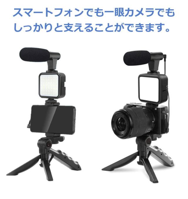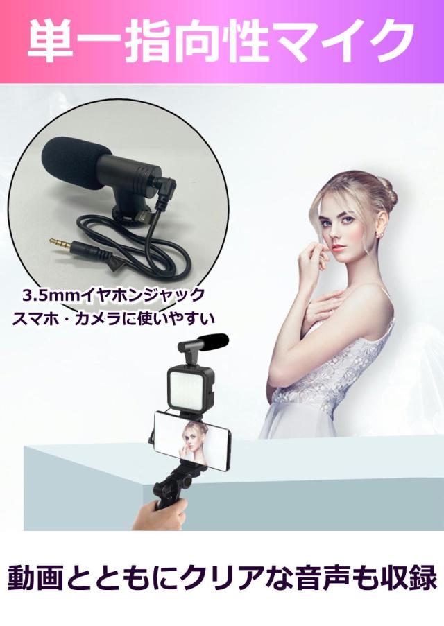 2Way三脚・スマホホルダー・LEDライト・単一指向性マイク