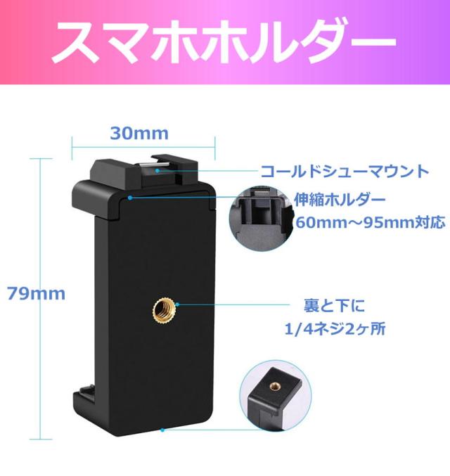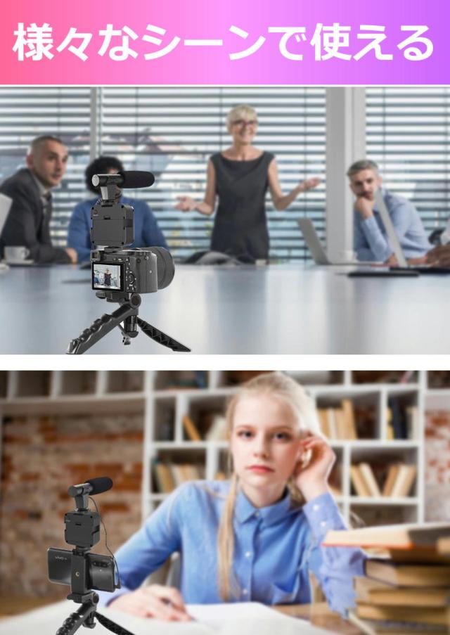 2Way三脚・スマホホルダー・LEDライト・単一指向性マイク 必要なものをすべて揃えました。 様々な撮影、配信シーンに合わせて、三脚や手持ちスタンド、 スマートフォンやカメラを使い分けする場面もきちんと対応 お手頃価格で本格的な動画撮影を実現できます!