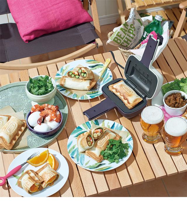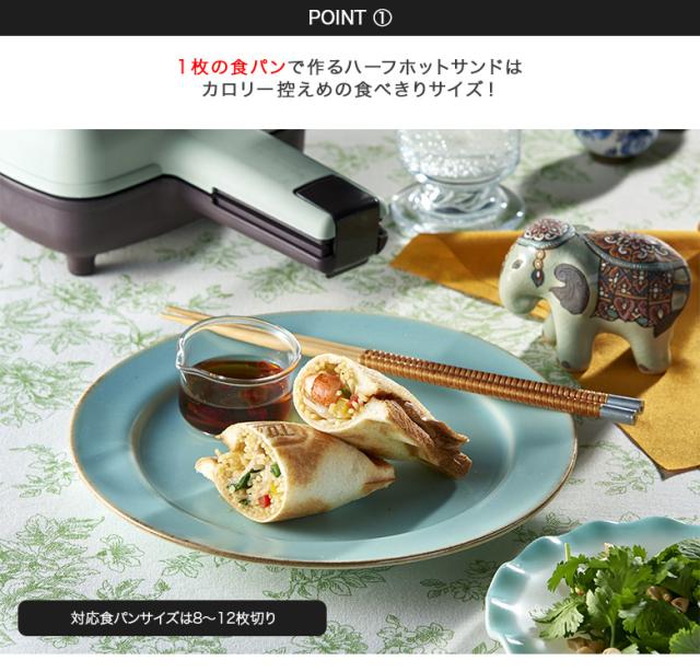 1枚の食パンを折りたたんで作る“ハーフホットサンド”ができる電気ホットサンドメーカー。
