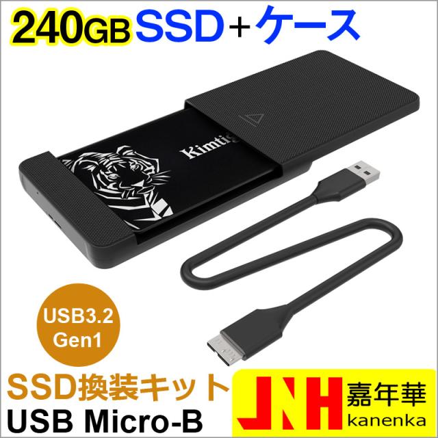 SSD 240GB 換装キット JNH製 USB Micro-B データ簡単移行 外付けストレージ 内蔵型 2.5インチ 7mm SATA III KIMTIGO KTA-300 SSD付属 ネコポス送料無料 ポイント消化