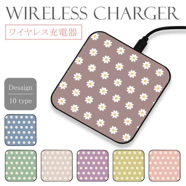 【送料無料】 ワイヤレスチャージャー 充電器 ガラス製 モバイルバッテリー 大容量 iphone マーガレット 韓国 かわいい おしゃれ 花 デイジー くすみカラー フェミニン デイジー パターン クリア ペア シンプル 女の子 デザイン