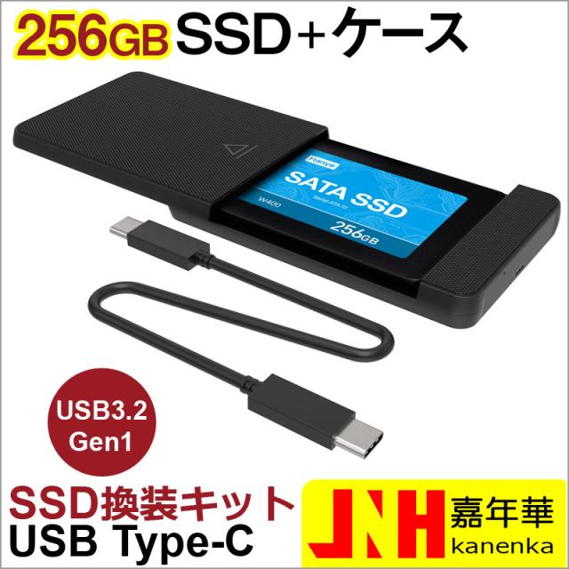 SSD 256GB 換装キット JNH製 USB Type-C データ簡単移行 外付けストレージ 内蔵型 2.5インチ 7mm SATA III Hanye 3D Nand TLC SSD付属 ネコポス送料無料 ポイント消化