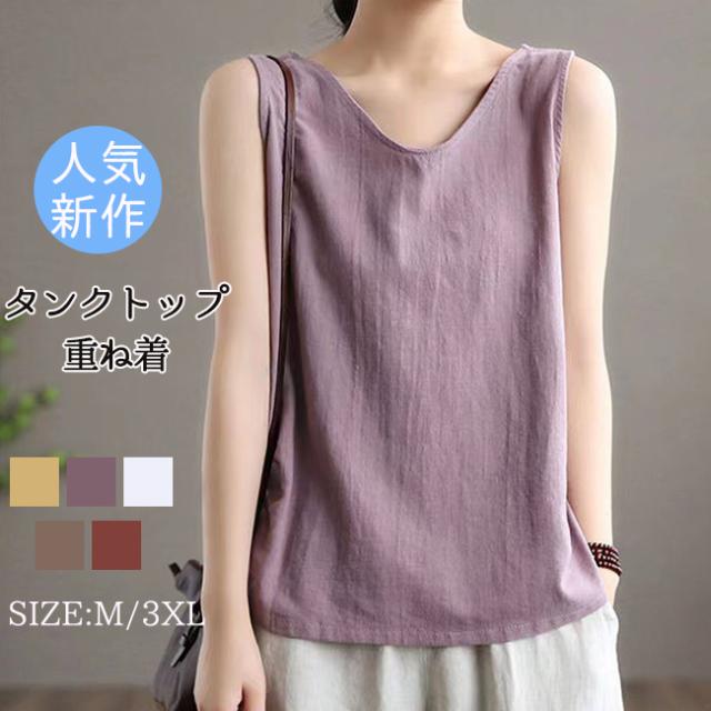 新作 タンクトップ レディース キャミソール 重ね着 オシャレ 夏 レイヤード コットン 綿 インナー カットソー トップス 着回し 無地 シンプル