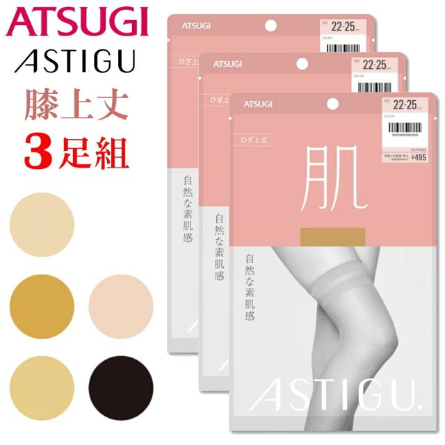 (ASTIGU)【3足組】 膝上丈 ポイント5倍 新パッケージにリニューアル! アツギ 肌 膝上丈 ストッキング パンスト アスティーグ 素肌感 透明感 伝線しにくい アツギ F04520 ネコポス便で送料無料