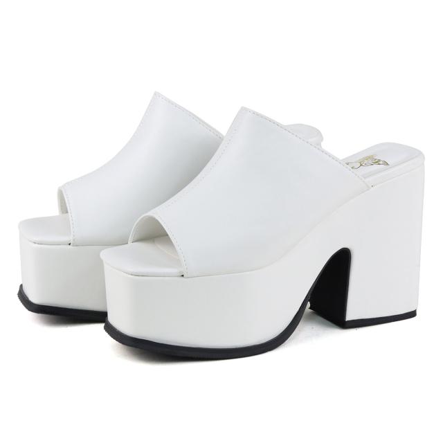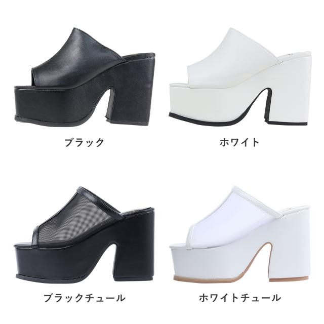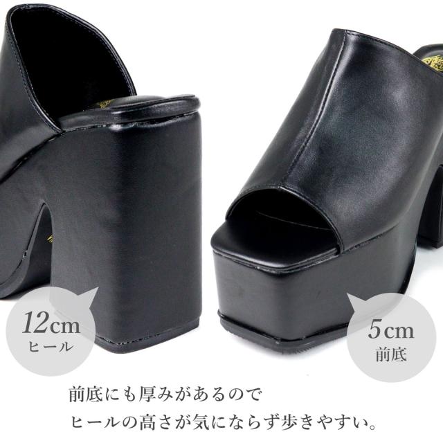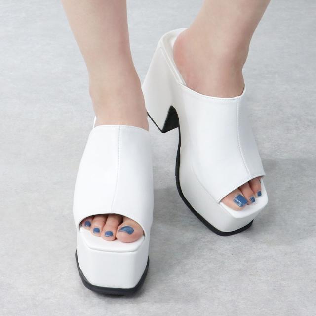 サンダル レディース ミュール つっかけ 厚底 ハイヒール センターシーム スクエアトゥ オープントゥ 12cmヒール No.1574 22.5cm〜24.5cm 黒 ブラック 白 ホワイト LOVEHUNTER ラブハンター