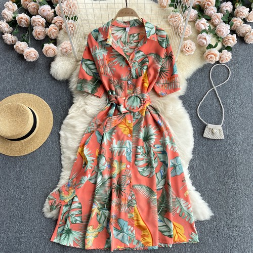 綺麗系・カジュアル系・セレブ系・個性派ファッション!目立ち度MAX リゾート柄デザイン シャツワンピース ゆったりデザイン