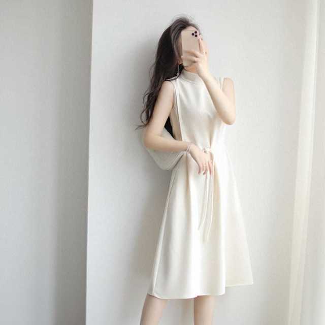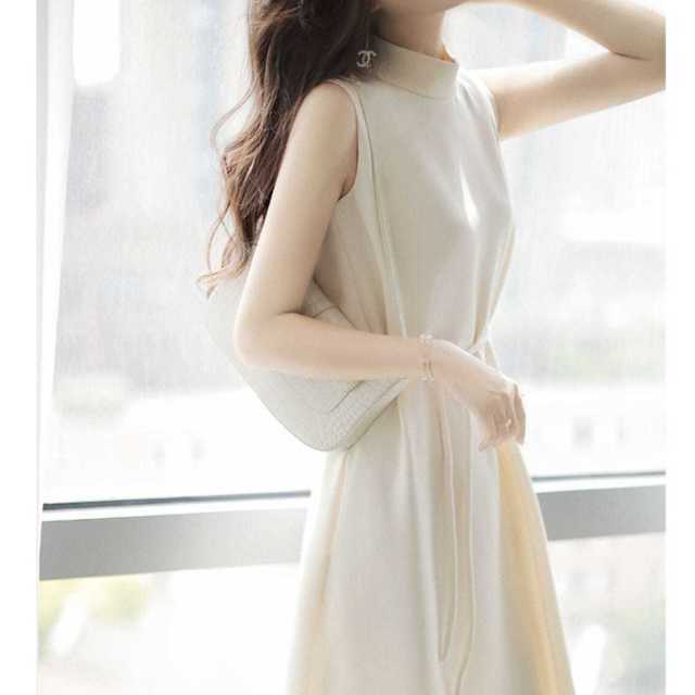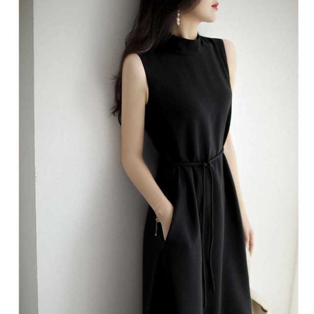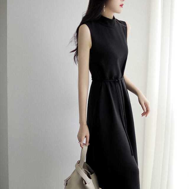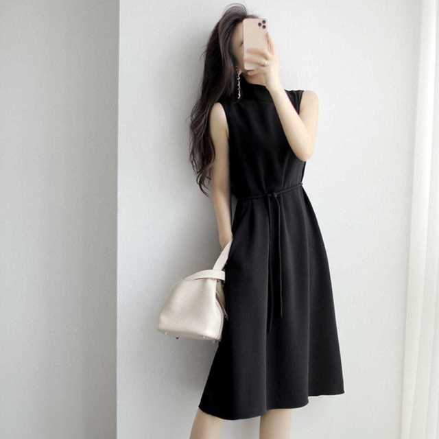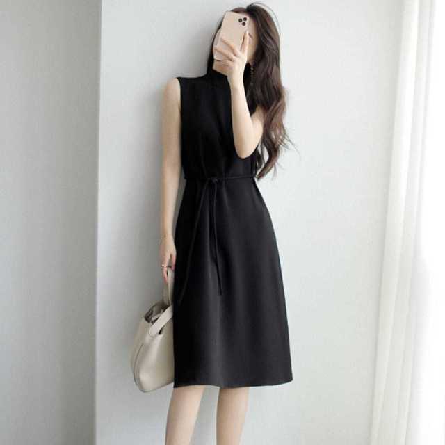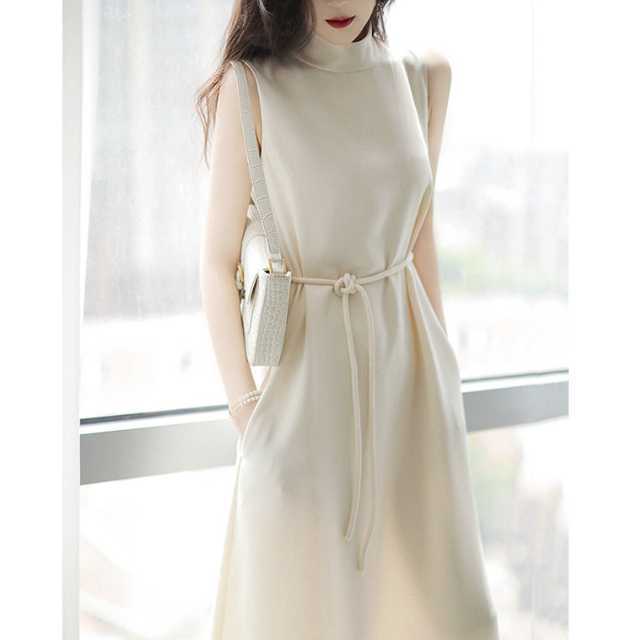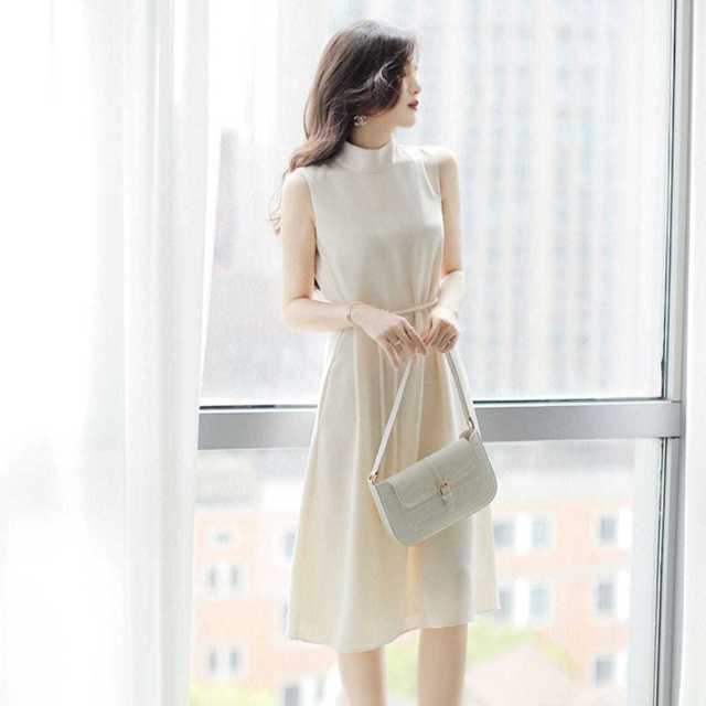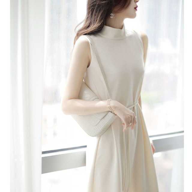 ハーフネック&ノースリーブで上半身をスッキリと魅せてくれるAラインワンピース♪
