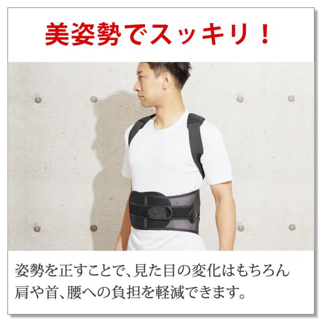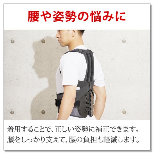着用することで正しい姿勢に補正しながら、腰も支えるので腰の負担を軽減できます。